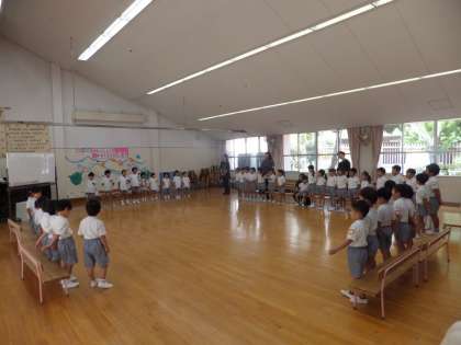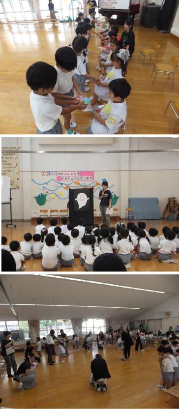おうちの人と仲良し遊びをしたり、歌ったりして楽しみながら、みんなでお祝いをしました。