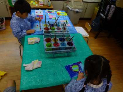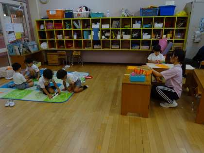 4歳児りす組は、好きな遊びをしたり、遊びに使うものをつくったりして過ごしていました。