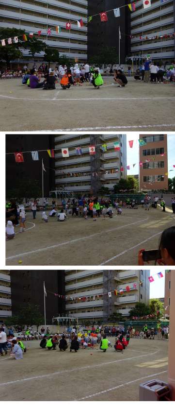 「ねらって ねらって〜親子玉入れ」では、子どもたちが頑張って玉を入れた後に、保護者の皆様がさらに玉を入れて、総合計で競いました。