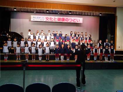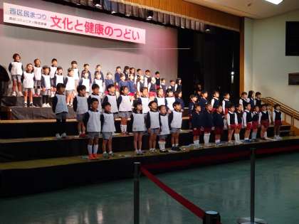 2日。西区民まつりが開催され、西区大阪市立幼稚園3園(日吉幼稚園 九条幼稚園 靭幼稚園)の年長児が歌声を披露しました。