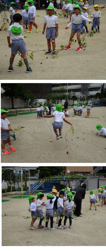 また、電車ごっこができる長いツルもあり、友達と電車に乗って園庭の散歩も楽しんでいました。