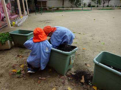 その後は、友達とツルを持って走ったり、引っ張ったりして遊んでいましたが、ふたりほど、まだプランターのところに・・・・。