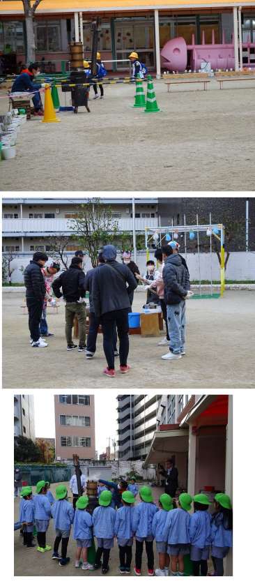 園庭では、お手伝いのお父さん方、地域の方、お母さん方がうすを温めたりしながら、準備をしてくださっていました。