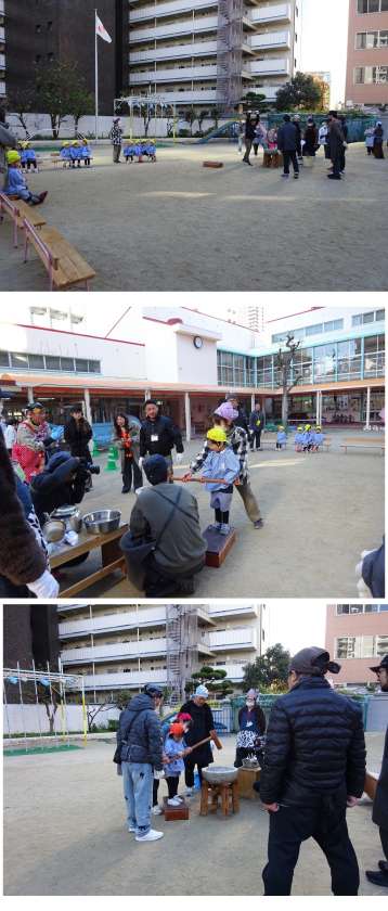その後、クラスごとに、ひとりずつおもちをつきました。