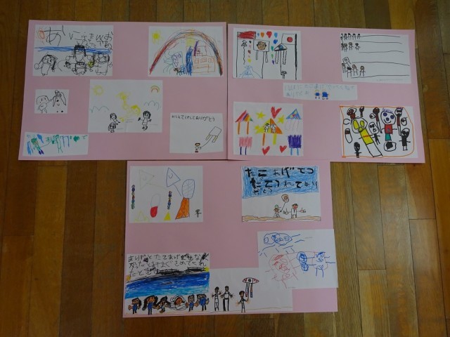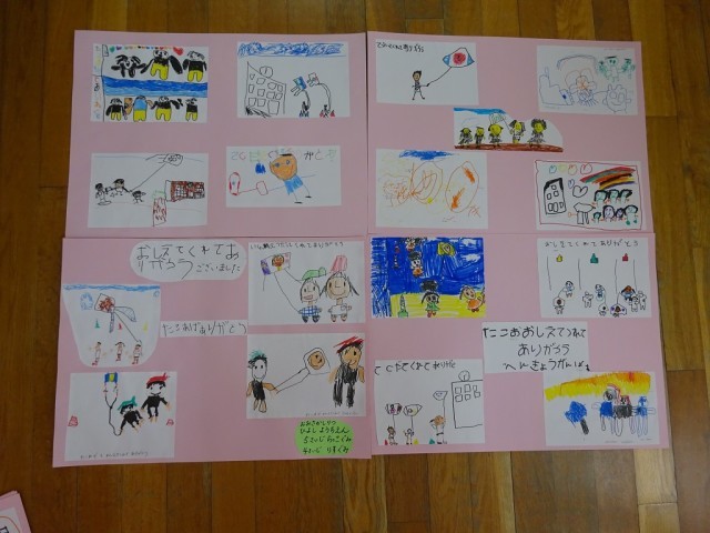 1年生へお手紙・・・ 公開日 2026/01/14 更新日 2026/01/14 幼稚園日記 少し遅くなりましたが、12月に日吉小学校で1年生と一緒にたこあげをしたお礼のお手紙を小学校へ届けました。1年生と一緒にしたことが楽しかったこと、手伝ってくれて嬉しかったこと、とても優しかったこと・・・などを 5歳児らっこ組と4歳児りす組が、絵や言葉で表現しました。(文字に関して、書いたものについては、正しい文字を知らせています)小学校、1年生へ憧れや親しみをいっぱいもっている子どもたちです。 いいね(0)