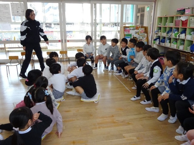 この1年間で大きくなったこと、そのためにはどうすればよいのかを絵本を通して子どもたちに話しました。