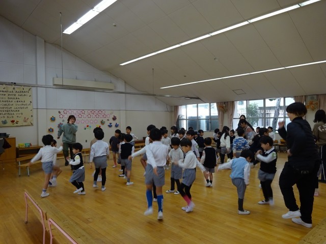 全員が遊戯室に集まって、一緒に歌ったり、なかよし遊びをしたりしました。
