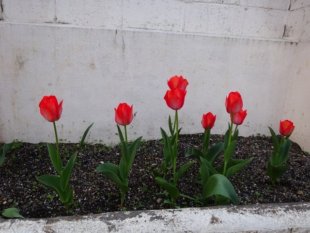 園庭のチューリップもぐんぐんと伸びて花を咲かせています。