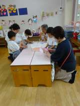 3歳児ひよこ組は、折り紙を教えていただいたり、コマを一緒に回したりして過ごしまし...