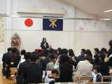 明日は入園式です。今日は、進級児が明日の入園式で新しい友達に伝える言葉や歌を遊戯...