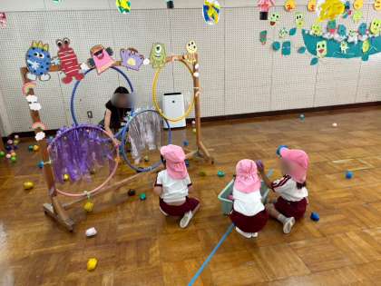 ?保護者の皆様が、企画、準備、当日まで、園児のために実施してくださった『みさきっこまつり』当日まで、楽しみで待ち焦がれていた子どもたちは、クラスでそれぞれの遊びを回り、友達や先生と存分に楽しんでいました。笑顔がいっぱい見られました。