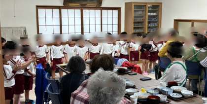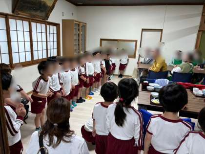 5月には、そら組が憩いの家に遊びに出かけました。最初は、少し緊張していましたが、歌を披露したり、童歌を一緒に歌ったり、肩たたきをしてふれあったりする中で笑顔が見られるようになりました。たくさん拍手をもらって嬉しかったですね。次回を楽しみに、さよならしました。