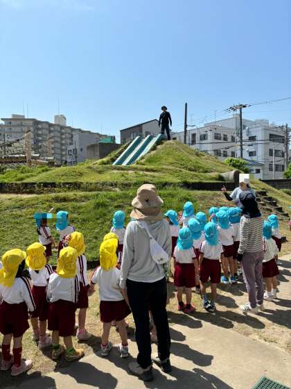 近隣の小学校にある、三先山に、そらぐみときぐみが遊びに行かせていただきました。教頭先生に挨拶してから、約束を聞いて、いざ山へ。