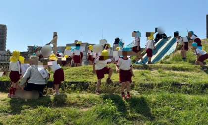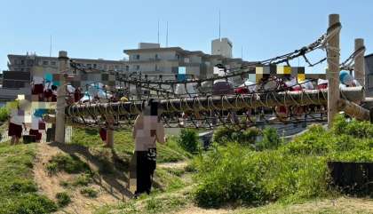 山の頂をめざして登ったり、網の橋を渡りに行ったり、土管の中に潜ったり。魅力いっぱいの遊び場に大満足の子どもたち。休み時間に、修了した友達と会える楽しみもありました。小学校の皆様、ありがとうございました。