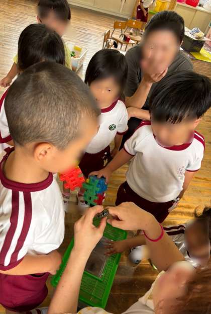 7月がもうすぐ終わります 公開日 2024/07/30 更新日 2024/07/30 幼稚園日記 短い夏を感じる終業式間近に、庭で鳴いていたセミを捕まえました。激しい鳴き声に、恐る恐る近づく桃組。教師が手に持ったセミを、興味をもった子どもがそうっと触ったり、ジーッと見たりしていました。 いいね(0)