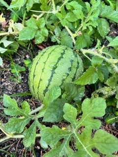みんなで植えたスイカが大きくなってきましたよ!2学期になったらみんなで中身を見てみましょうね。