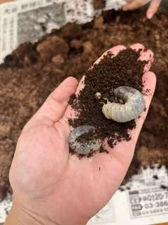 そして、みんなで見つけた、カブトムシのたまごから幼虫が生まれました!まだまだ小さくてかわいいです。(写真の手の上には3匹乗ってるよ!見えるかな?)また幼稚園が始まったら一緒にをお世話しましょうね。