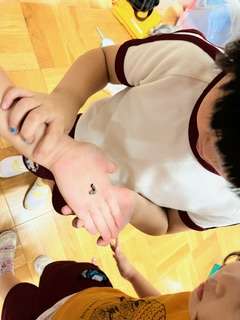 そら組さんがそっと優しく手のひらに乗せていると、ころりんとうんちをしたカブトムシの赤ちゃん。みんなは見せて見せて!と興味津々でした。