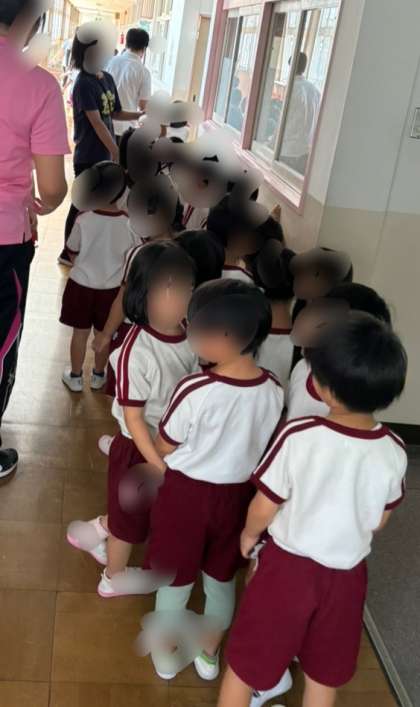 今年度初めて電車に乗って、海遊館に出かける前に、ペアになって、園内を歩きました。階段の登り降りは手を放す、廊下を道に見立てて、車道側を空組が歩く、など、確認しました。