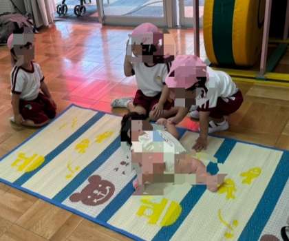 ふれあいらんど 公開日 2024/10/27 更新日 2024/10/27 幼稚園日記 桃組がふれあいランドに遊びに来たお友達と一緒に遊びました。赤ちゃんが寝転んでいると、「可愛いね」と集まってきて、優しく関わっていました。歌の披露も、小さいお友達も仲間入りして一緒に歌いました。少しお兄さん、お姉さんになったようです。 いいね(0)