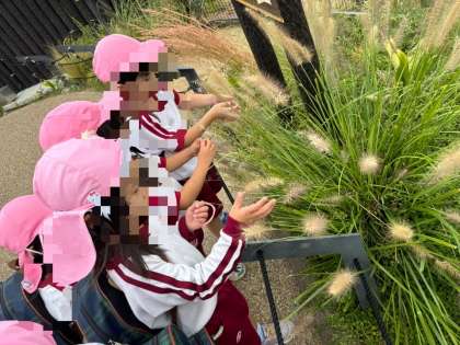 そんな動物園でも、目につくのは、自然物。落ちている赤い木の実を見つけて拾ったり、知っているネコジャラシによく似た大きいネコジャラシを見つけて魅入ったり。自然との関わり、興味関心の高まりを感じるひとときでした。