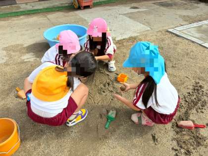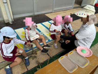 今年度、自然との関わりを深める研究に取り組んでいます。秋の自然に関わる園内研究保育を実施しました。空組が丸い泥団子をつくる姿を見ていた桃組が、私もつくりたい、と、仲間入り。丁寧につくり方を教えてくれました。また、夏に種蒔きし、花が咲いたひまわりの種採りをし、蒔いた種と同じであることに気付きました。