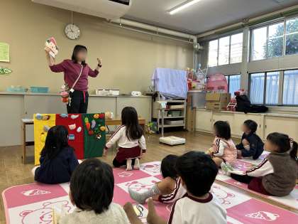 桃組は、食べ物の名前から、黄組は食材のチームわけから、空組は去年知った3色栄養の振り返りから、と学年に応じた指導をし、「食べることは大切」ということに気付いてもらいました。