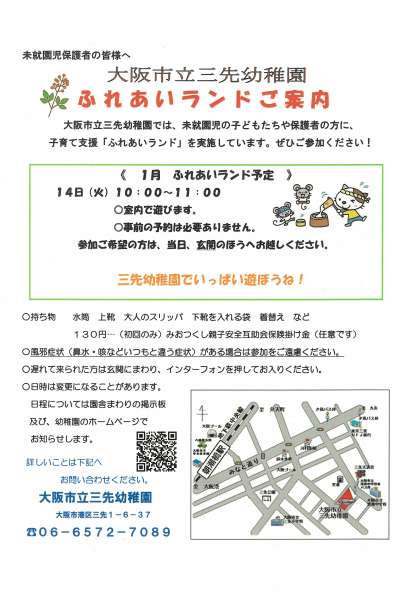 1月のふれあいランドのお知らせ 公開日 2024/12/24 更新日 2024/12/24 幼稚園日記 1月のふれあいランドは、14日(火)です。 室内遊びをする予定です。みなさん来てください。お待ちしています〜 いいね(0)