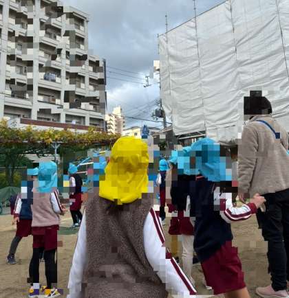 お楽しみ会が終わり、園庭には、サンタのソリの跡と氷が残されていました。空組が黄組、桃組に知らせて、皆で見に行きました。冷たい氷を集めたり、空を見上げて、サンタクロースを探したり。子どもたちの夢が広がる時間となりました。