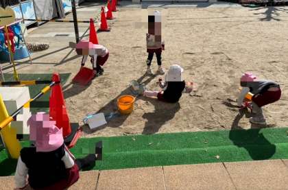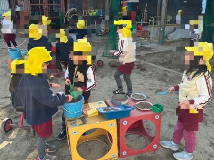 三学期が始まり、寒い日が続いていますが、園庭では、マラソンで温まった後、友達と一緒に、ごっこ遊びや乗り物での遊びなど、楽しんでいます。陽だまりを見つけて遊ぶ桃組の姿も見られました。