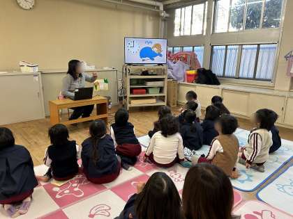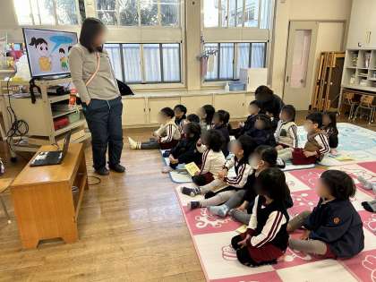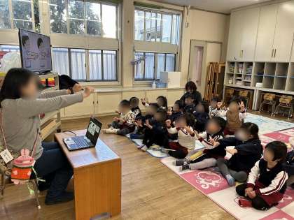 また、朝ごはんや冬野菜を食べること、体を動かして遊ぶこと(毎朝のマラソン頑張っています)、お風呂に入ること、早寝をすることで体が温まることを知らせ、体が温かくなると風邪やインフルエンザにもなりにくい強い体にもなることを伝えました。