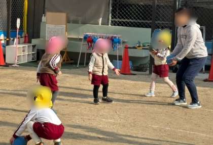寒さ厳しい日々が続く中、子どもたちは、朝から体操、マラソンに取り組んでいます。空組が先生になって前に出て体操を楽しんでいます。マラソンも、続けていく中で、最後まで走り続ける自分なりの速さを見つけるようになりました。体が温まってから、園庭で、ボール遊びや砂遊びなどで先生や友達との関わりを楽しんでいます。