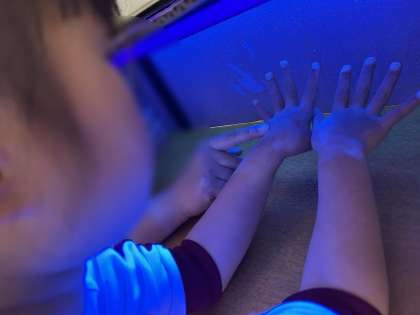 「手ぇ洗ったで!」と自信をもって見せてくれていた手が、実は洗えていなかったことに気付き、「もっかい洗ってくる!」という声や(手洗いって難しいんやな…)と感じる様子がみられました。