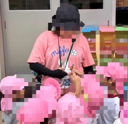 パンジーの花にトゲトゲの幼虫を見つけた空組に見せてもらい、3匹分けてもらって大切に育ててきました。週明け、チョウに羽化したツマグロヒョウモンを空に放しました。最初は、先生の手に止まっていましたが、飛び立つとあっという間にに屋根の上まで元気に飛び立つました。また、遊びに来てくれるかな。