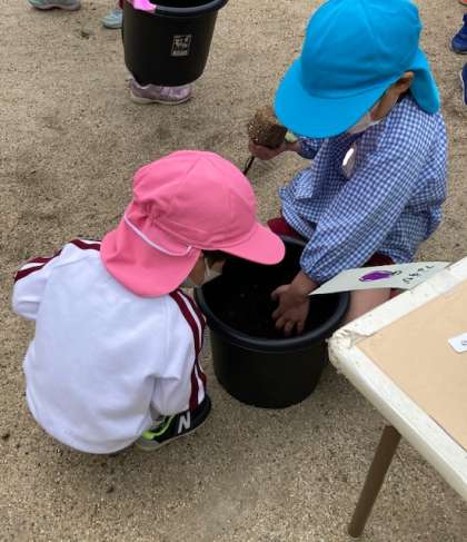 夏野菜の苗を植えました 公開日 2022/05/14 更新日 2022/05/14 幼稚園日記 ミニトマトやナス、ピーマンなど、好きな野菜を選んで苗植えをしました。 苗の植え方を、空組の子どもたちが、桃組の友達に優しく教えてくれました。 いいね(0)