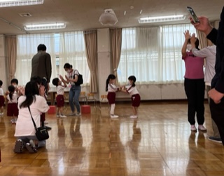 今日は4月、5月生まれのお友達の誕生会でした。今月のプレゼントは、「てんとうむしちゃんのメダル」です。胸にかけてもらい、嬉しそうでした。おうちの人と一緒にした仲良し遊びも楽しかったですね。