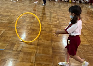 今日はフープを転がして遊びました。