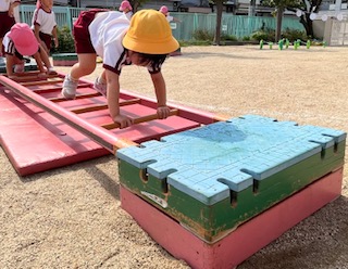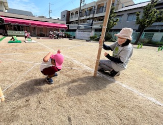 虫たちが集まる公園に、橋とクモの巣が登場しました。