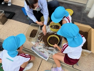 子どもたちは、何になるのかな?と興味をもって見たり、世話をしたりしています。