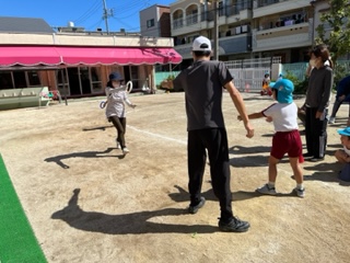 空組の子どもたちが、先生チームとリレーをしたいと伝えにきました。盛りあがりました!