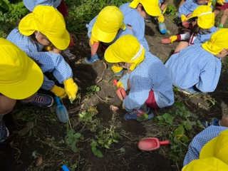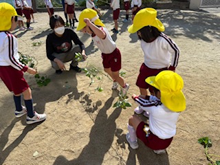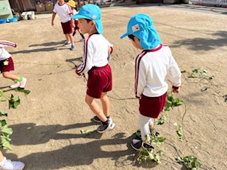 ツルの長さを比べたら、ツルを使って跳んだり、電車ごっこをしたりしました。