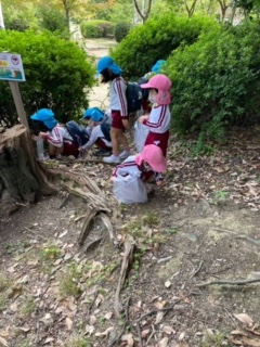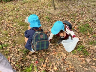 おにぎりを食べた後は、付近を散策しました。 ドングリやマツボックリを見つけました。
