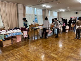 朝からたくさんの方が、バザーの手づくりの品物や、制服のリサイクルなどを手にとっておられました。