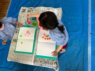 桃組の子どもたちが、デカルコマニーの技法を楽しみました。