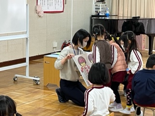 1月13日 4歳児訪問事業 公開日 2023/01/16 更新日 2023/01/16 幼稚園日記 4歳児訪問事業として、区の保健福祉センターの担当者の方が、黄組の子どもたちに、体の大切さについてお話してくださいました。 いいね(0)
