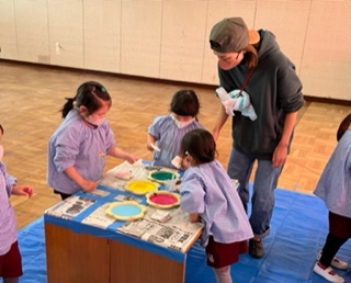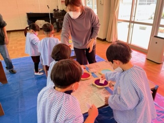 染め紙の旗づくり 公開日 2023/02/21 更新日 2023/02/21 幼稚園日記 28日のPTAお楽しみ会に向けて、会場を飾り付ける旗をつくりました。紙を好きな色に染めています。紙を広げた時の模様のおもしろさや美しさに歓声があがっていました。 PTAお楽しみ会、楽しみですね。 いいね(0)