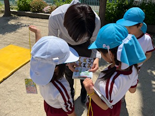 アオムシがいたよ 公開日 2023/05/12 更新日 2023/05/12 幼稚園日記 ポケットずかんを手に、園庭で虫探しを楽しんでいます。 幼稚園にキンカンの木があったことを思い出し、アオムシ探しを始めました。まだまだ小さいアオムシを見つけ大喜びの子どもたちです。 図鑑を見ながら、先生や友達と考えを伝え合いながら、アオムシを飼育できるように整えました。 いいね(0)