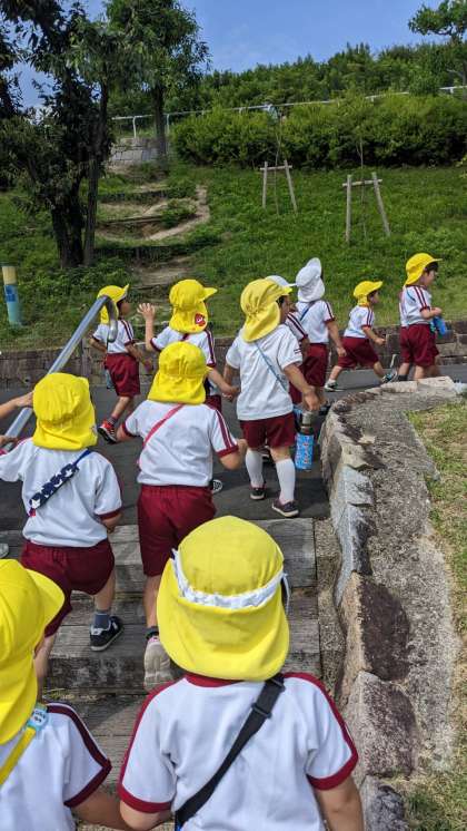 山の上では、景色を見たり、虫探しをしたりして遊びました。