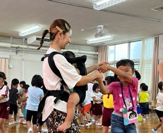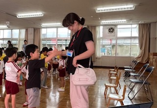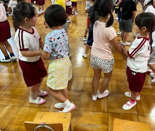 プレゼントを渡したり、仲良し遊びをしたりしました。仲良し遊びの最後に、友達とパチン!と手のひらを合わせることを楽しんでいました。