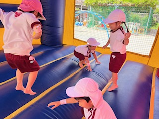 お楽しみのコーナーに、エアー遊具が登場しました。